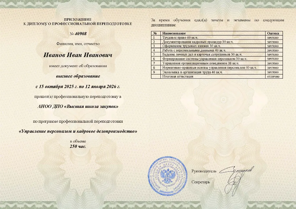 Профессиональная переподготовка, 250 академических часов, 14 модулей: основы административного права и кадрового делопроизводства, документирование трудовых отношений, ведение трудовых книжек, работа с персональными данными и личными делами работников. Онлайн-обучение в в Липецке с итоговой аттестацией.