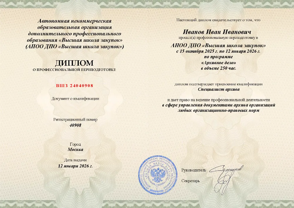 Программа профессиональной переподготовки (250 часов) для специалистов по архивному делу. Освойте правовые основы управления документами, технологии делопроизводства, оцифровку и организацию работы электронного архива с экспертизой ценности документов. Онлайн-обучение в в Липецке с итоговой аттестацией.