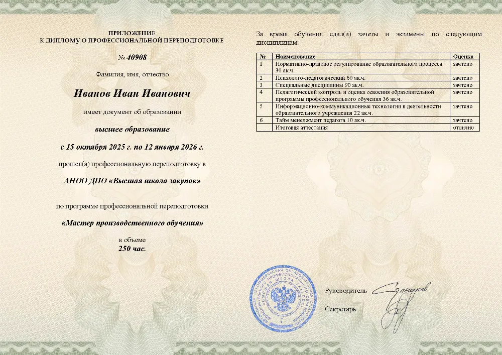 Профессиональная переподготовка, 250 академических часов, 6 модулей: нормативно-правовое регулирование образования, психолого-педагогические основы, специальные дисциплины, педагогический контроль и оценка, применение ИКТ в обучении, тайм-менеджмент педагога. Онлайн-обучение в в Липецке с итоговой аттестацией.