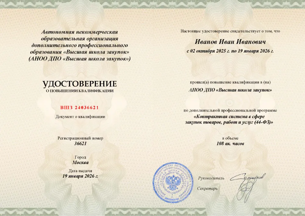 Программа профессиональной переподготовки на 500 академических часов для специалистов по закупкам по 44-ФЗ и 223-ФЗ. Данный курс охватывает полный цикл закупочной деятельности, проходит в дистанционном формате с практической направленностью. По итогам выдается диплом о профессиональной переподготовке с присвоением квалификации.